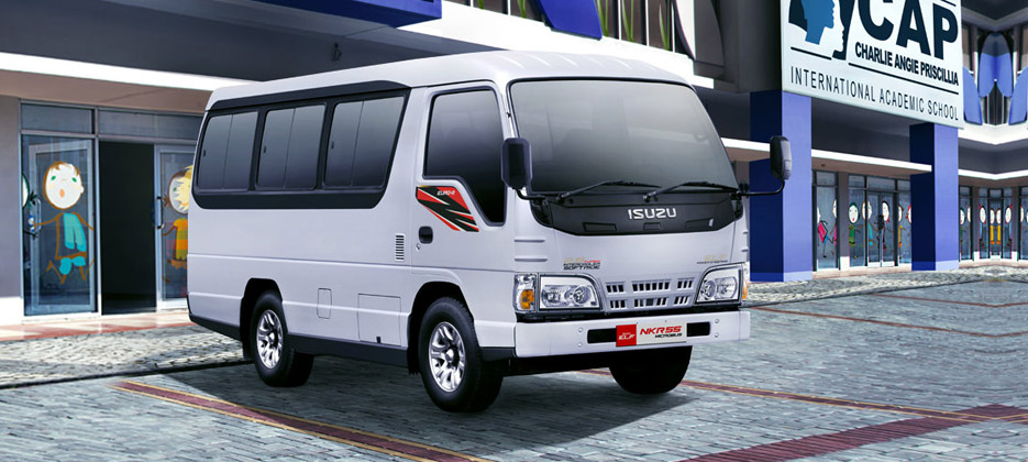 Isuzu Elf memiliki fitur hiburan dan kenyamanan yang makin melimpah sekaligus membantu pengendaraan mobil di medan-medan berat.